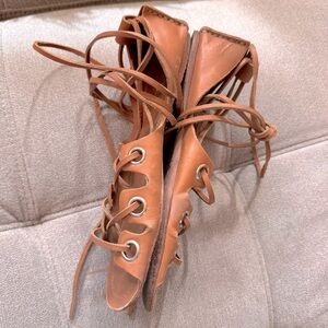 Zimmermann Leather Gladiator Flat Sandals strappy wrap riveted brown tan boho