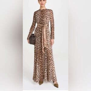 Zimmermann Leopard Print Long Sleeve Maxi Dress SZ1/S