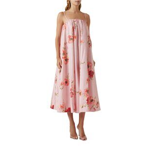 Zimmermann Lightburst Puff Midi Dress Womens 4 12 Pink Red Floral Cotton Poplin Women's Lightburst Floral Puff Midi Dress ZIMMERMANN size: 4 / US 12 Floral Print Sleeveless Midi Length Adjustable Straps Cotton Poplin Construction Pink & Red Timeless & Versatile Women's Zimmermann Lightburst Floral Puff Midi Dress in a size 4 / US 12. A strapless silhouette that features a delicate floral print on lightweight cotton. An in-built bra shelf and adjustable shoulder straps ensure comfortable, personalized all-day wear, while its relaxed puffed fit is secured with an elasticated neckline and a back zip closure. Originally $875 - Fast Same Day Shipping. ST