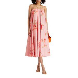 Zimmermann Lightburst Puff Midi Dress Womens 4 12 Pink Red Floral Cotton Poplin