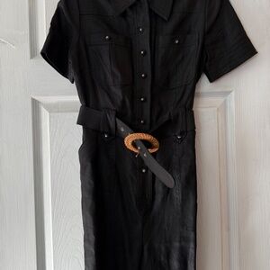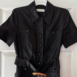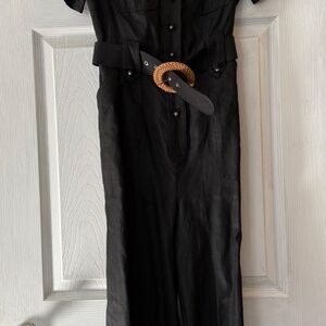 Black linen jumpsuit with woven belt from Zimmermann.
