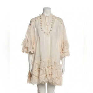 Zimmermann Lyre Lace Trim Embroidered Mini Dress Crochet Balloon Sleeve Cream 3