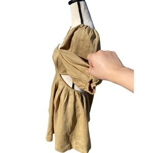 Zimmermann Mae Coquette Bow 100%rge Linen Tea Party Style Dress Size L short length dress. Worn gently with no visual signs of wear. Dress features an open back with a coquette style bow in the upper middle back, open cut out on sides very feminine tea party, coquette look.