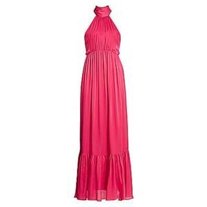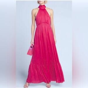 Zimmermann Magenta Red Silk Halter Bow Tie Gathered Maxi Gown Flow Dress Size 8