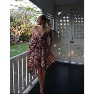 From the Resort 2024 collection, this ZIMMERMANN Matchmaker minidress is defined by an all-over tiger print and an oversized bow on the front, lending the garment a statement look. It's cut from pink silk satin to a strapless, boned bodice and flared skirt that nods to classic eighties styles.