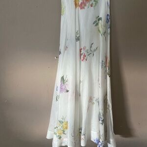 Material: 53% linen, 47% silk. Care instructions: dry clean. Made in China. Designer color name: Multi Botanical Ivory. Separate lining slip: 86% polyester, 14% elastodiene. Closure: buttoned front.