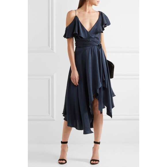 Zimmermann One-Shoulder Ruffled SIlk Wrap MIdi Dress Size 0