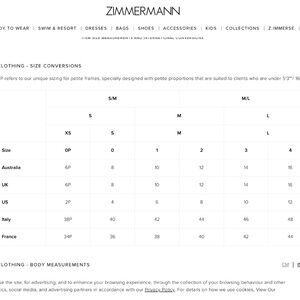 The dress is a Zimmermann 2 or US 8. Reference size chart for your conversion.