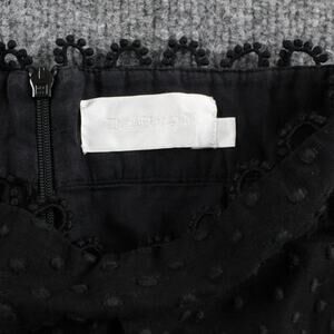 Gently worn, no visible flaws noted. Zipper functions properly and lining is intact. Lace trim and textured fabric show no holes or stains. Size tag not visible; size estimated from measurements shown in photos.