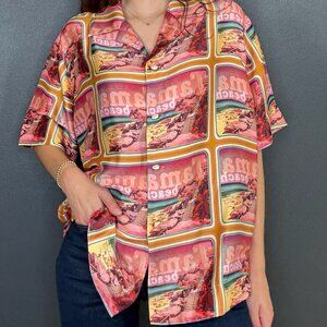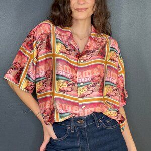 Zimmermann silk short sleeve "Tamara Beach" button up top w/ seashell buttons. Designer size 0.
