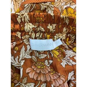 Zimmermann 'Andie' Red Floral-Print Silk Shorts Size 0/ US Small. Size 4: printed with blooms in a warm, autumnal palette, cut from lightweight silk, they have an elasticated drawstring waist.
