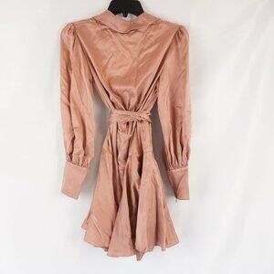 Zimmermann Silk Wrap Long-Sleeve Mini Dress In Blush - Women's Size US 2P - NWT