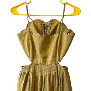 Elegant tan dress by Zimmermann. Features scalloped edges and spaghetti straps. Perfect for summer occasions. Zimmermann main tag has been removed. Inner tag is as pictured. It’s size 1.
