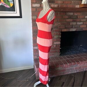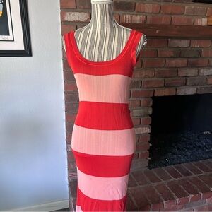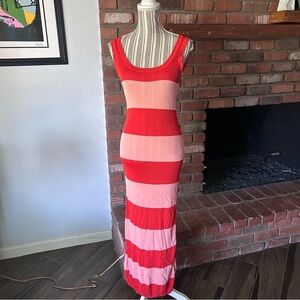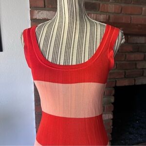 Zimmermann Tank Midi Dress in Coral & Shell Pink Rugby Stripe Sz 0 *flawed*