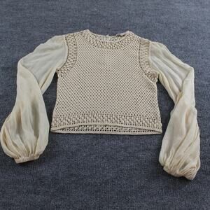 Zimmermann Top 6 Luminosity Crochet Knit Sheer Cream Balloon Boho Chic Romantic