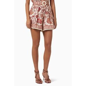 Zimmermann Vitali trimmed tuck printed linen shorts - 0 - Sepia Floral