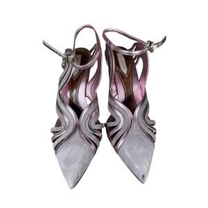 Zimmermann Wave Pumps 40 US 9 Purple Suede & Metallic Leather Heels Rare
