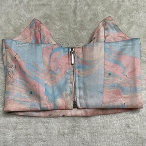 Zimmermann Women's Pastel Marble Pink Blue Zip Up 100% Silk Corset Size 1 / 6 US