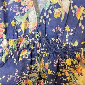 Zimmermann Zinnia Shirred Waist Floral Linen Dress Cobalt Blue Womens 2 / US M