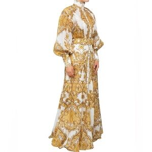 Zimmermann Zippy Billow Gold Paisley Maxi Dress AU0 / US 2 Silk Linen NWT