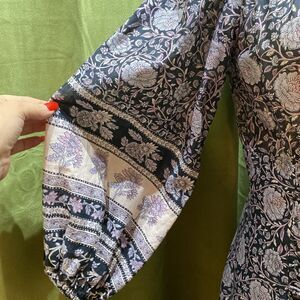 Zimmermann Purple and Pink Fit and Flare Dress with Bishop Sleeves, US4