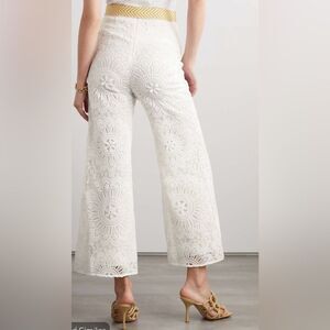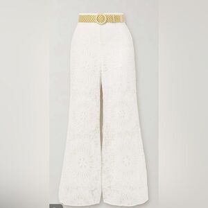 Experience the elegance of Zimmermann's white wide-leg pants and jumpsuits, crafted with a luxurious drape and tailored waistlines. These pieces feature high-waisted designs and full-length cuts, perfect for formal occasions or sophisticated casual wear. New, no tags