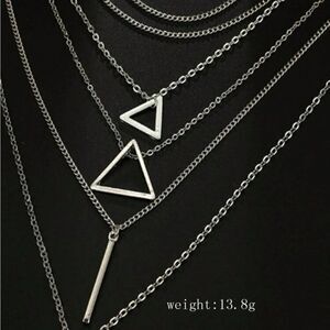 Zinc Alloy Multi-Layered Silver color Triangle Pendant Necklace