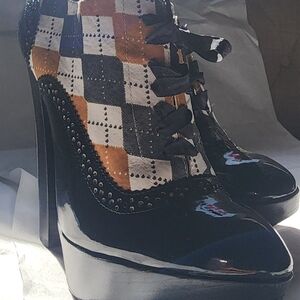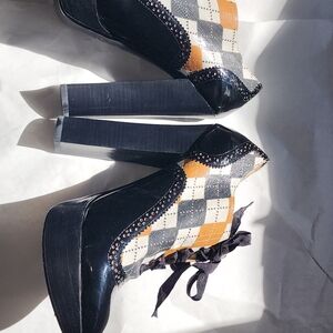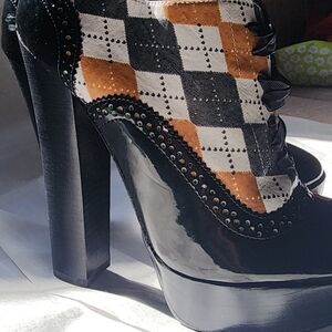 Zinc Polk Shoes Size 7. Super cute! Worn once, but too high for me. They have a couple scratches on the inside side of the shoe, but not too noticeable.