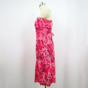 Zinc Strapless Pink Floral Print Dress Tulle Corset Back Flutter Hem M