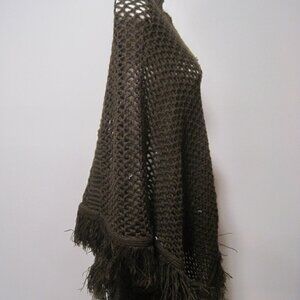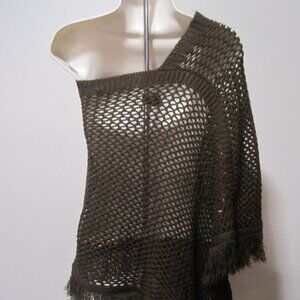 Zinc Women's Large Brown Crossover Shawl Sweater Wraps Knit Poncho Fringe Trim