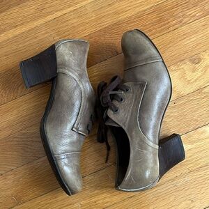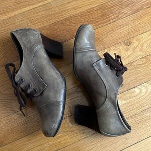 Leather Stack Heel Lace Up Loafer / Oxford Style Shoes / Booties / Heels