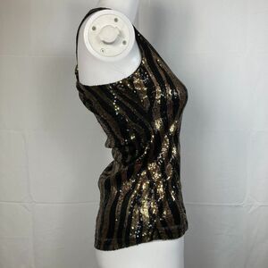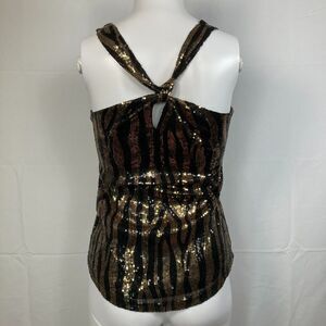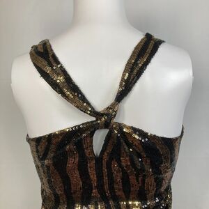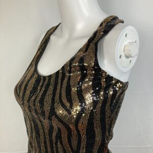 Zinga Camisole Tank Womens Sz S Black Gold Zebra Sequin Keyhole Knot Back