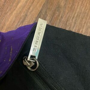 Stylish Zingara bag in black and purple. Features a sleek design with a zipper closure