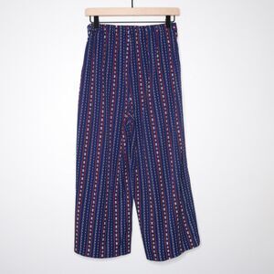 Zink London Womens Wide Leg Pants Medium Blue Red Boho Western American Cropped