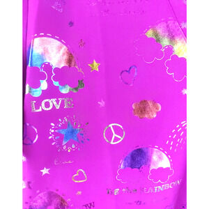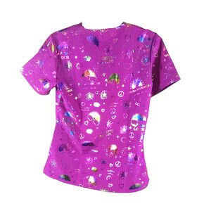 Zinnia Women's Scrub Top Size Small Purple Heart Rainbow Clouds Moon Stars