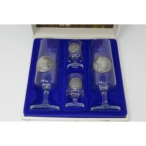 Up for sale is a set of Rastal Zinnmünsen Glasses. This includes 2 Beer Cups and 2 Shot Gasses with Pewter Coins. These Measure approx. 6.5" tall and 2.75" tall. Box has some wear.