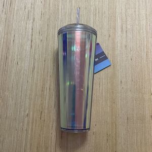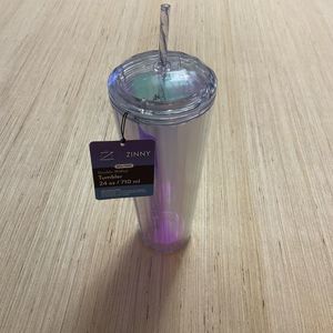 Zinny 24 Ounce BPA Free Clear Iridescent Tumbler Lid With Straw Brand New