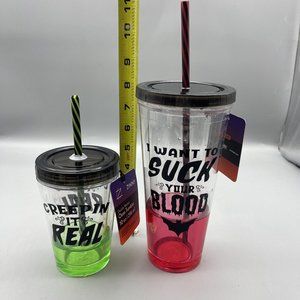 Zinny Insulated Halloween Double Walled Tumblers 10&20 Oz. Creepy Blood w/straw