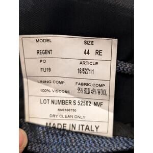 Zino Made in Italy Regent Blue Silk/Wool Two Button Men's Blazer Size 44R. Pre-owned, this blazer is in excellent condition. Measures 31.5" center back from base of collar to hem and 25" sleeves from shoulder seam to hem. Pre-owned, this blazer is in excellent condition.
