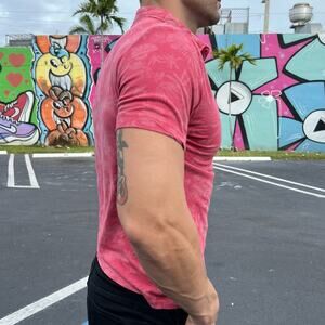 Zinovizo Men's Hawaiian Print Collared Button Down Polo Size Large. Red. Light preloved condition.