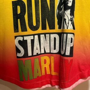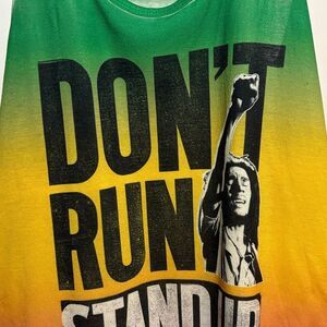 Vibrant tank top with bold graphic. Features 'Don't Run Stand Up Marley' text. Perfect for casual wear.