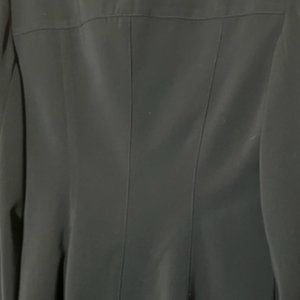 Black Pants suit by Tempo. Lined with sleek straight pants with hip hugger waistline. Jacket sips completely open . Band collar. Nice slimming lines.