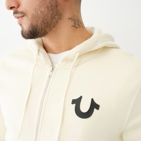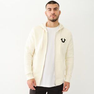Men's Large True Religion Striped Horseshoe Zip Hoodie. Winter White