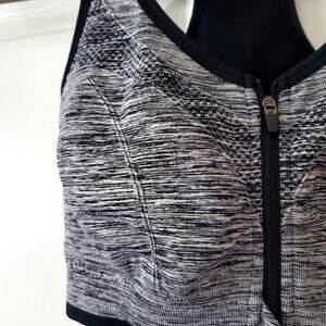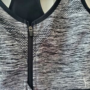 Danskin Now Zip Front Closure size L, gray & black, racer back. New Condition. One owner, washed 1x, never worn. Measurements are approximate.