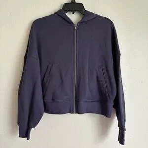Stylish zip-up hoodie with front pockets. Features a cozy hood. Ideal for everyday comfort.