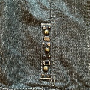 Adorable zip up jean-like jacket with bead embellishments. Excellent condition. Size 6P. Light black with low key gold threading. Bundle from my closet and save on shipping