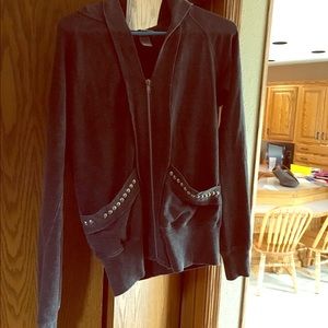 Charcoal gray zip up from The Buckle. Studs on the pockets. Little tighter. Large but fits like a medium.