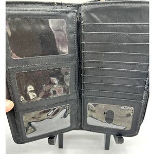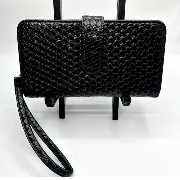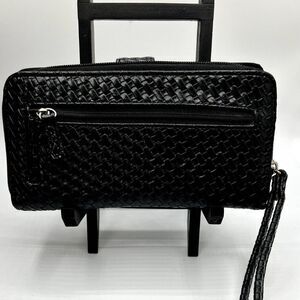 Zip Wallet Wristlet Black Woven Leather Checkbook Multiple Pockets and Slots