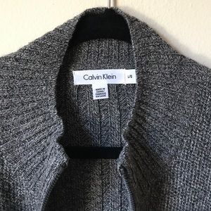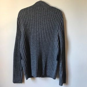 Men's striped cardigan, charcoal gray, cable knit back and sleeves 50% Wool 50% Acrylic