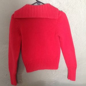 Nicely cared for red zip front sweater. This sweater is in good condition, there is a bit of color fade around the neck but still looks great! This runs small.